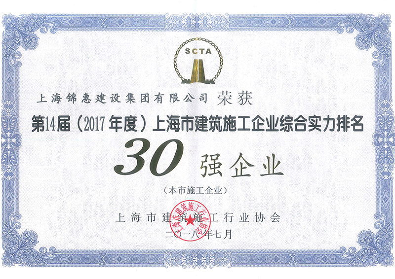 當前位置:主頁(yè) > 企業(yè)榮譽(yù) >錦惠集團榮獲2017年度“上海市建筑施工企業(yè)30強”稱(chēng)號