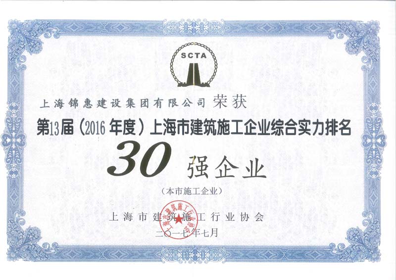 當前位置:主頁(yè) > 企業(yè)榮譽(yù) > 企業(yè)榮譽(yù) >2016年度上海建筑施工企業(yè)綜合實(shí)力排名30強