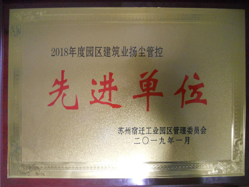 (蘇州宿遷工業(yè)園區建筑業(yè)揚塵管控先進(jìn)單位獎牌)