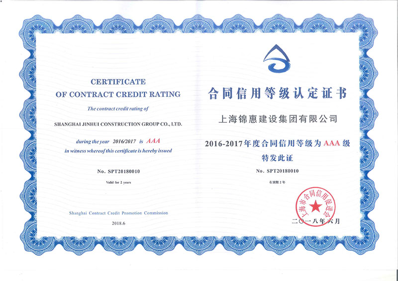 上海錦惠建設集團有限公司榮獲“2016-2017年度上海市守合同重信用等級3A級企業(yè)”。