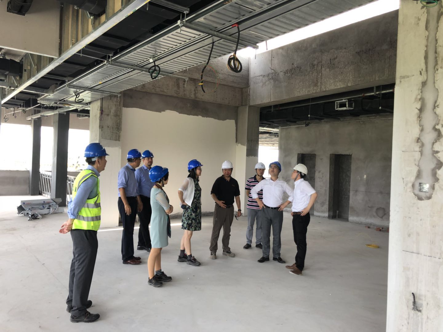 Song Jian一行在35度的高溫下,對施工現場(chǎng)進(jìn)行了全方位的察看,對現場(chǎng)的進(jìn)度、安全、文明施工等給予了充分的肯定。同時(shí),要求現場(chǎng)不僅要抓進(jìn)度,還要做好安全、整潔等文明施工管理工作,確保項目保質(zhì)保量完成任務(wù)。
